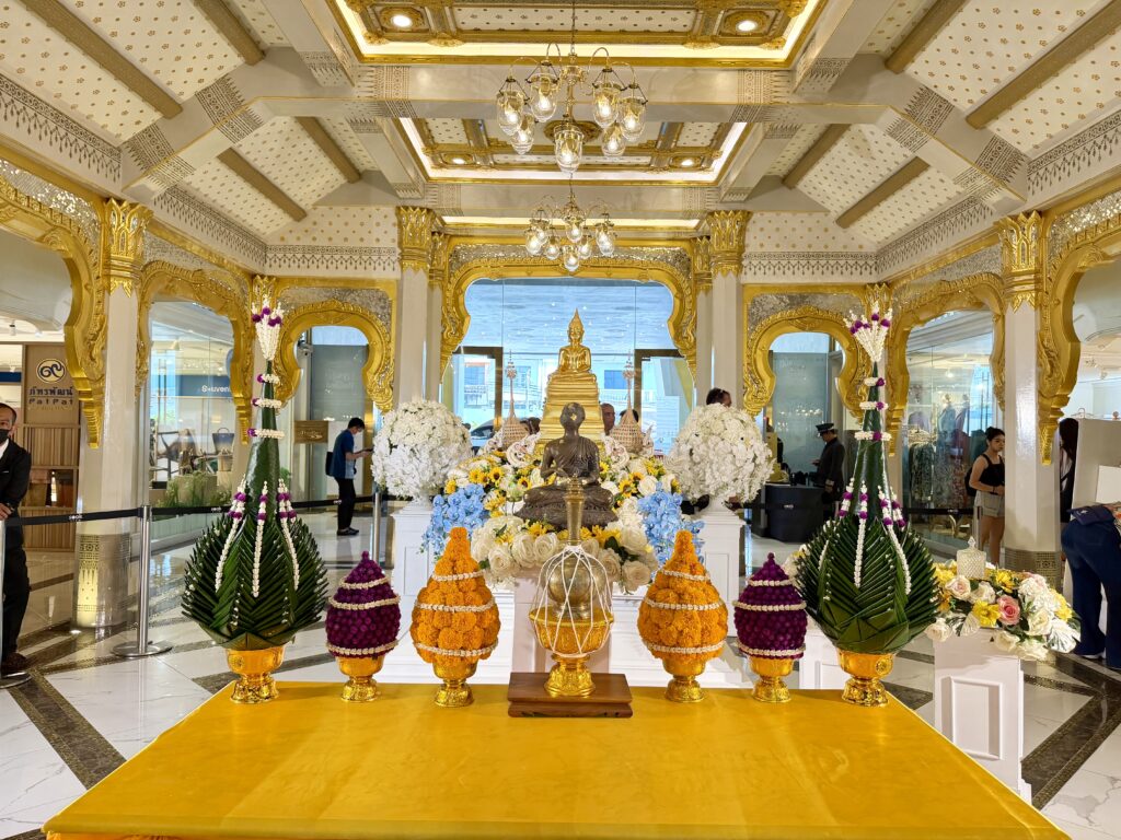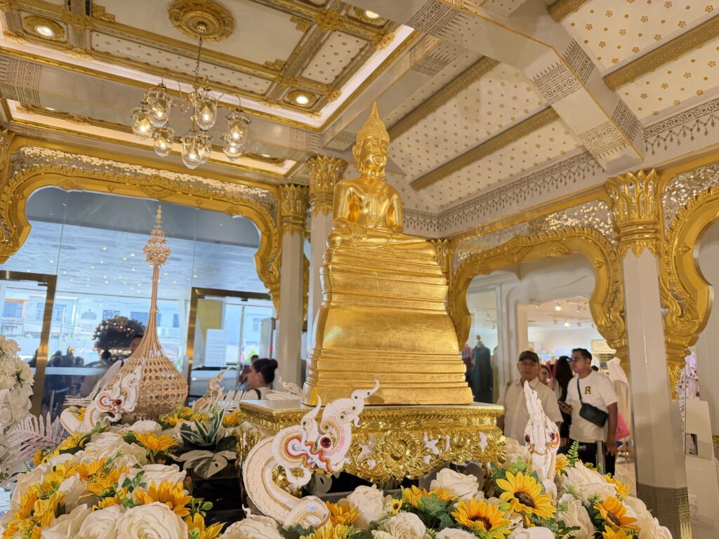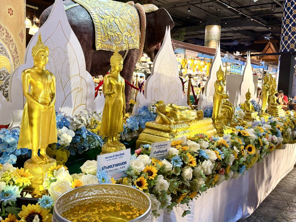 เมืองสุขสยาม ณ ไอคอนสยาม ได้ประกอบพิธีอัญเชิญหลวงพ่อเงินเพื่อถวายน้ำสรงจัดขึ้นในงานบุญเดือน ๕  เป็นจารีตประเพณีดั้งเดิมของโบราณอีสาน  อันบ่งชี้ถึงความบรรจงวิจิตรแห่งศรัทธาในพระพุทธศาสนาของท้องถิ่น “หลวงพ่อเงิน” เป็นพระพุทธรูปเงิน ปางมารวิชัย ศิลปะเชียงแสนล้านช้าง พระพุทธรูปศักดิ์สิทธิ์โบราณ คู่บ้านคู่เมือง อายุกว่า 700 ปี ที่ได้รับการยกย่องว่าเป็น “พระชัยหลังช้างแห่งแผ่นดินอีสาน” ในการสถาปนา  เมืองอุบลราชธานี ศรีวนาลัย ประเทศราช จากวัดปากน้ำ (บุ่งสระพัง) จังหวัดอุบลราชธานี มาสู่เมืองสุขสยาม พร้อมได้จัดให้มีการจัดขบวนแห่รอบเมืองสุขสยาม เพื่อเป็นสิริมงคลแก่ร้านค้าพันธมิตรและนักท่องเที่ยวโดยรอบ ก่อนอัญเชิญ “หลวงพ่อเงิน” ขึ้นประดิษฐาน   ณ ประตูสุขสุวรรณศาลา เมืองสุขสยาม ณ ไอคอนสยาม ชั้น G เพื่อให้ประชาชนและนักท่องเที่ยวได้ร่วมสรงน้ำถวายหลวงพ่อเงิน น้อมสักการะขอพร เสริมความเป็นสิริมงคลต้อนรับเทศกาลปีใหม่ไทย รวมถึงสรงน้ำขอพร พระอุปคุต และพระประจำวันเกิด  ตั้งแต่วันที่ 8 – 15 เมษายน 2569